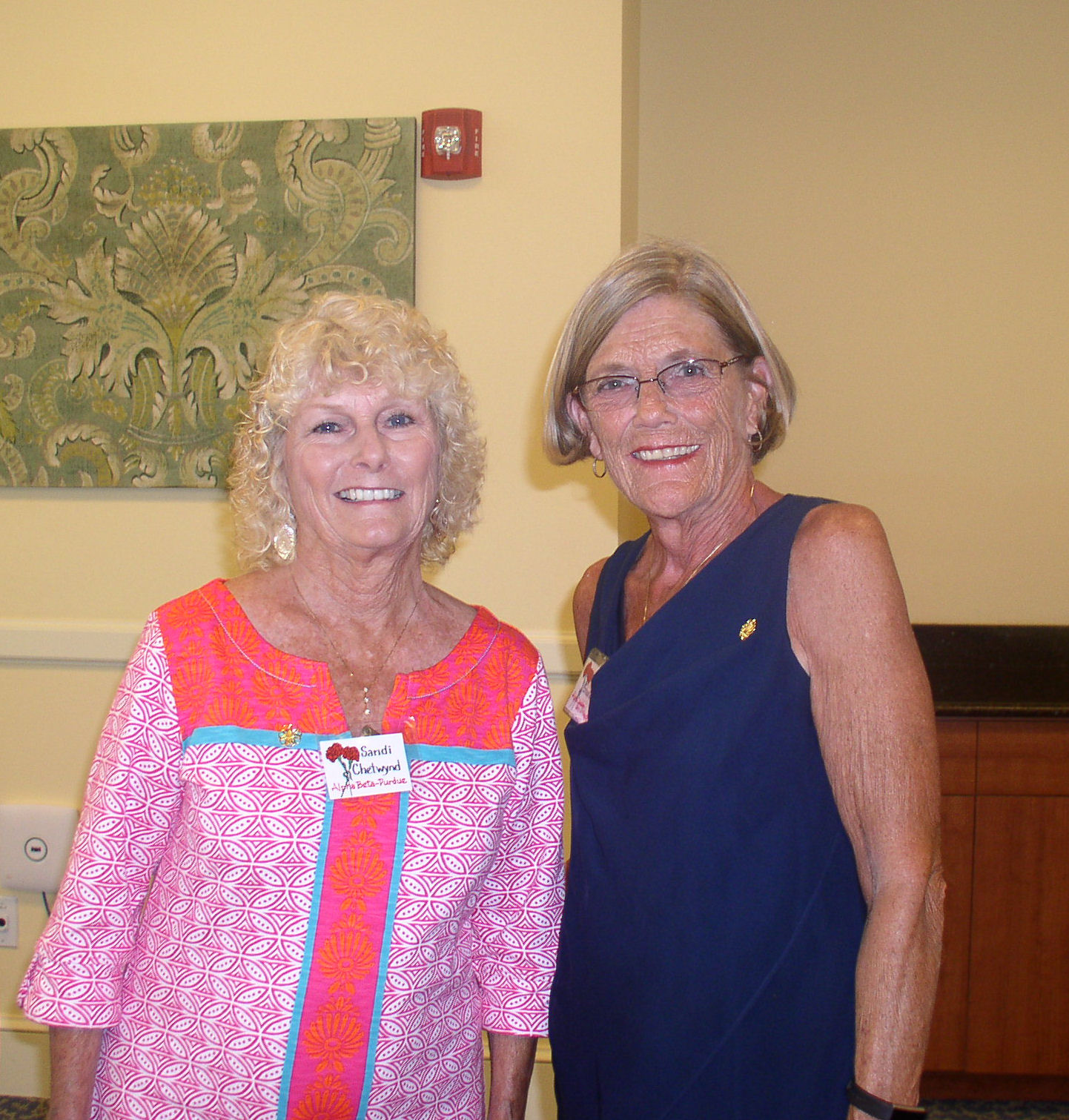 In the name of our patron goddess, Hera, members of the alumnae chapter who have contributed to the welfare or happiness of others are honored with a red carnation. This year, Delta Pi Delta members have amassed over 6,000 volunteer hours. Also honored were three members who received their 50-year pins: Ann Farrell, new member Marjie Taggart and Mary Swan. Birthday girls, Donna and Margi received their carnation nosegays. The installation of two officers took place: Vice President in charge of Membership, Julie Blanton, and Recording Secretary, Sandi Chetwynd.